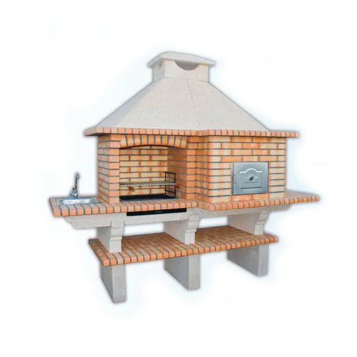 The integrated sink provides comfort and practicality, facilitating preparation and cleaning, while the refractory brick structure guarantees exceptional heat resistance and remarkable durability for regular and prolonged use.