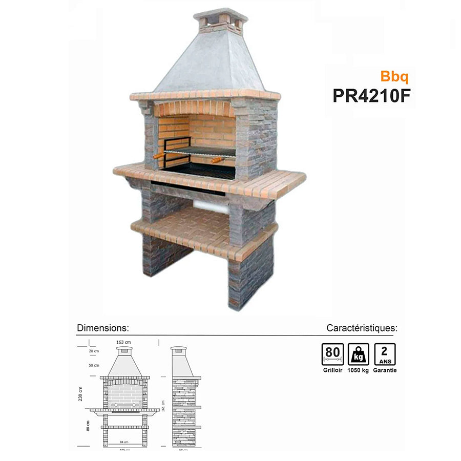 The PR4210F Stone Barbecue combines the timeless beauty of natural stone with the performance of a traditional barbecue. Carefully crafted, it is designed to offer authentic cooking with wood or charcoal , ensuring tasty and perfectly cooked grilled food.