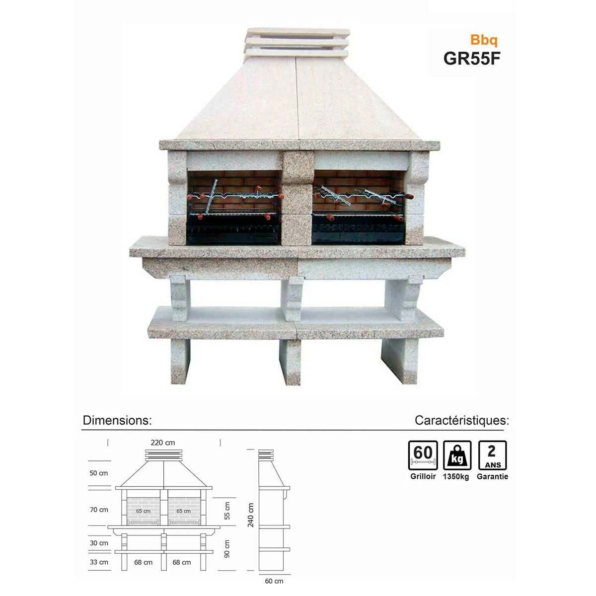 The GR55F Granite Stone Barbecue combines performance, aesthetics and durability , offering a high-end solution for enjoying traditional cooking over a wood or charcoal fire , while adding an elegant touch to your outdoor space.