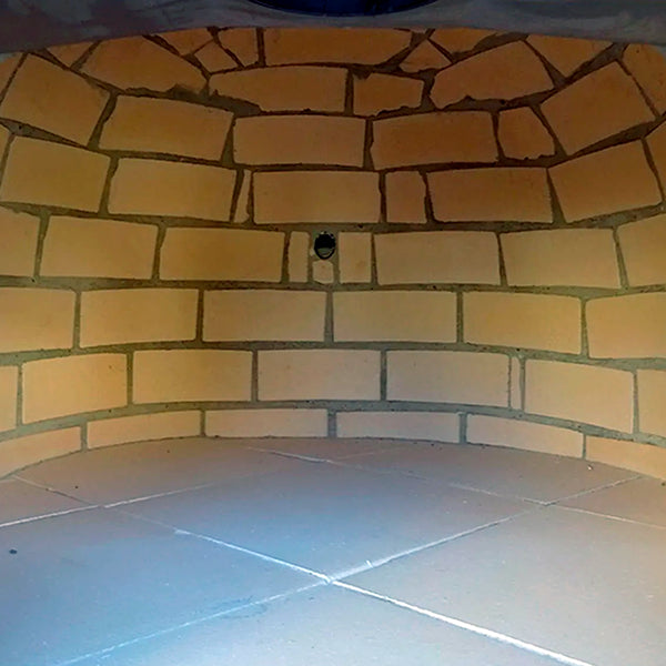 - The interior insulation of our ovens is made of rock wool; the exterior is finished with cement and 100% natural refractory clay and a brick lining