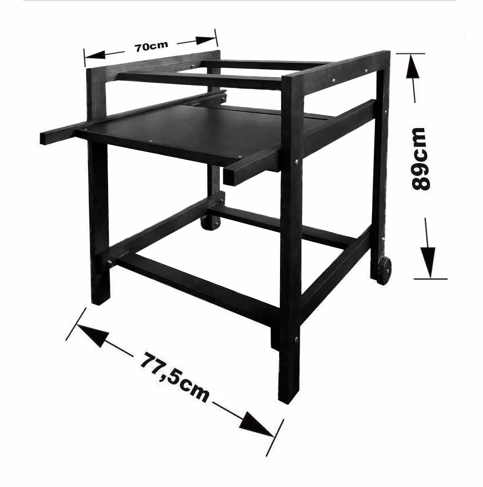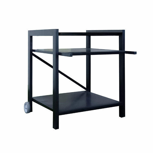 Black-coated steel stand/trolley, designed for Maximus wood-fired ovens, equipped with 2 removable nylon wheels for easy movement. Its thick stamped steel plate frame ensures exceptional strength.