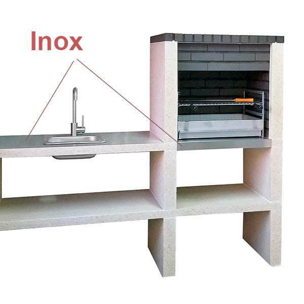 • Barbacoa + horno de leña + fregadero integrado para una cocina exterior completa