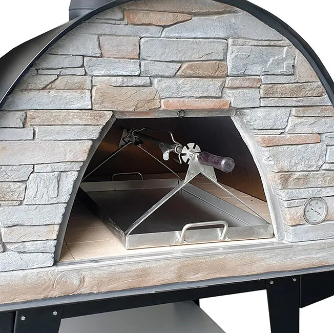 Réalisez des cuissons traditionnelles à la broche avec le tournebroche AC18F, spécialement conçu pour le four à bois Maximus 70 cm. Cet accessoire indispensable vous permettra de préparer de succulentes viandes rôties, avec une cuisson homogène et savoureuse.