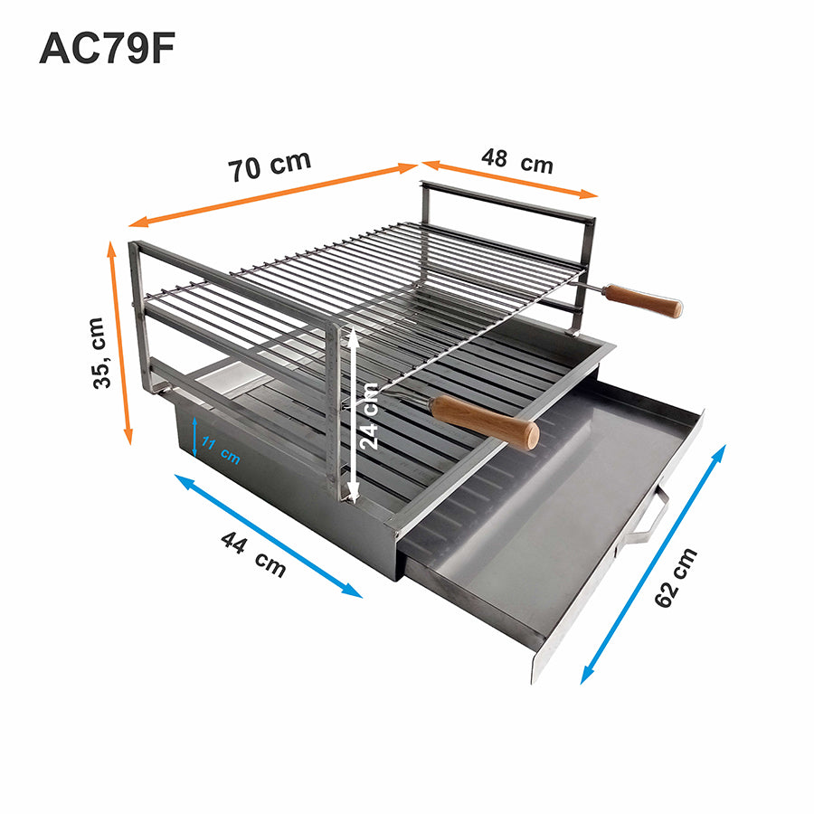 Add a touch of performance and elegance to your outdoor kitchen with the 70x48 AC79F stainless steel built-in grill. Designed to integrate perfectly into a countertop or custom structure, this accessory is ideal for grilling, roasting, and cooking a wide variety of foods while enjoying the unique flavor of wood-fired cooking.